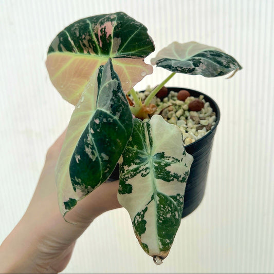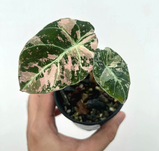 Alocasia 'Serendipity' Medium Pink Variegated Rare Plant Roots in moss (10"-15" size)