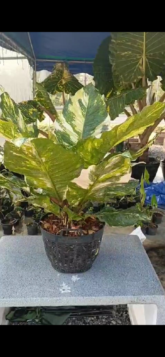 Variegated Anthurium XL "bird's nest" type, likely an Anthurium Superbum or Hookeri get similar, roots in moss