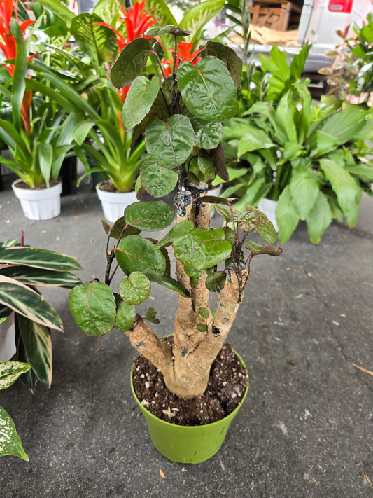 6 inch Pot- Fabian Aralia Tree Stump Unique Bonsai Live Plant, 6" Pot, Green/Purple Foliage - Get similar to picture