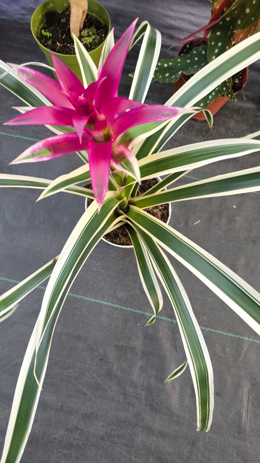Bromelia Guzmania White Stripes pink flower - Get similar