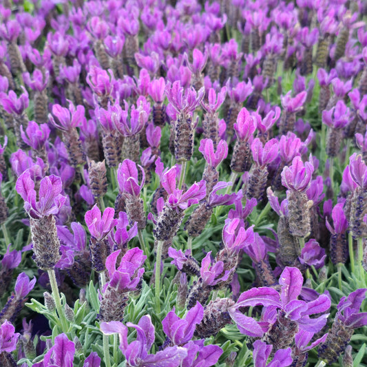 Lavandula stoechas, commonly known as Spanish or French lavender 8 inch pot