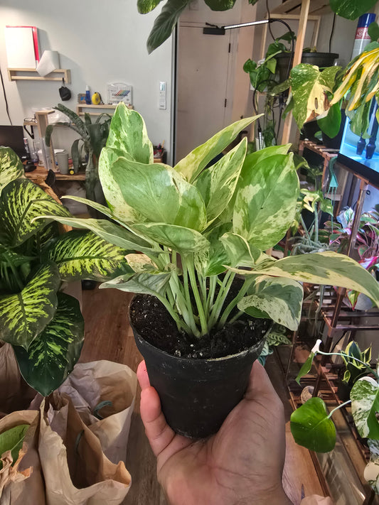 - Njoy Pothos: This variety boasts deep green leaves with irregular white or cream-colored markings.