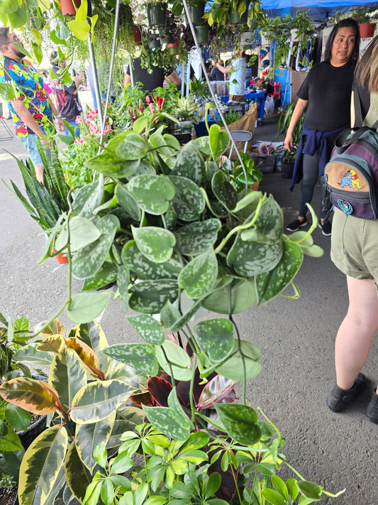 6 inch Pot - Silver Splash Pothos - Live Scindapsus Pictus Exotica, Silver Satin - Hanging Plant - Air Purifier - Get one like the picture