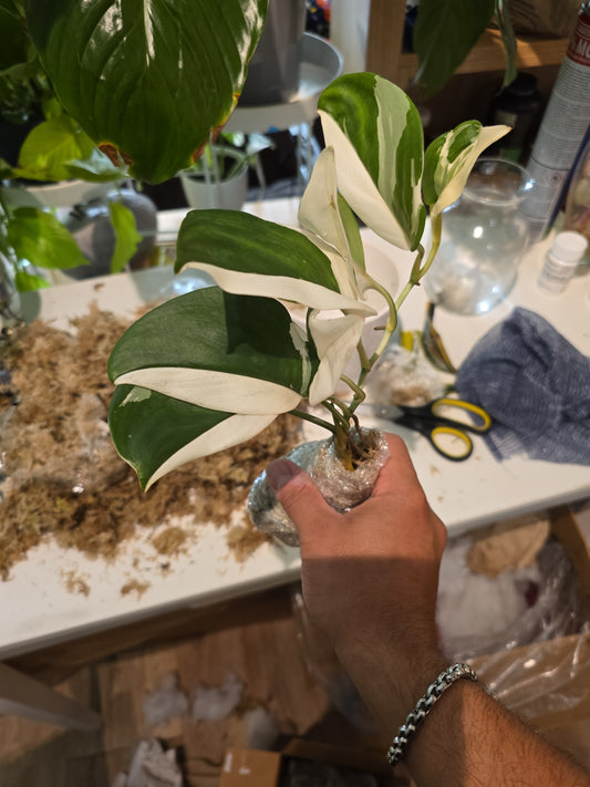 Marble Queen scindapsus root in moss 4+ leaves