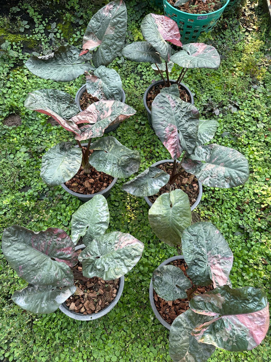 Rare New Serendipity Variegated Alocasia 1 feet tall (Medium size) plant roots in Moss