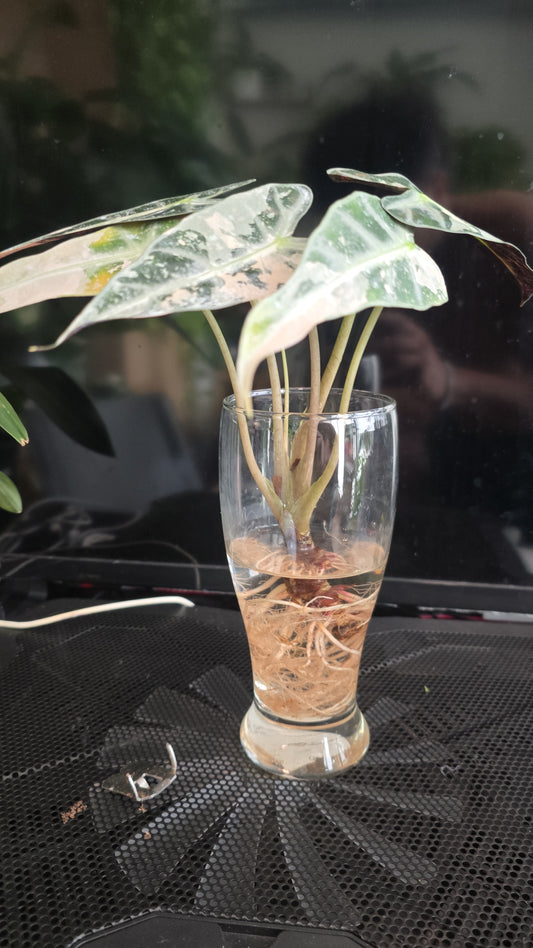 (UG-58)Root in moss 4+ leaves - Alocasia 'Bambino' Variegated Rare Plant- Get Similar to the picture
